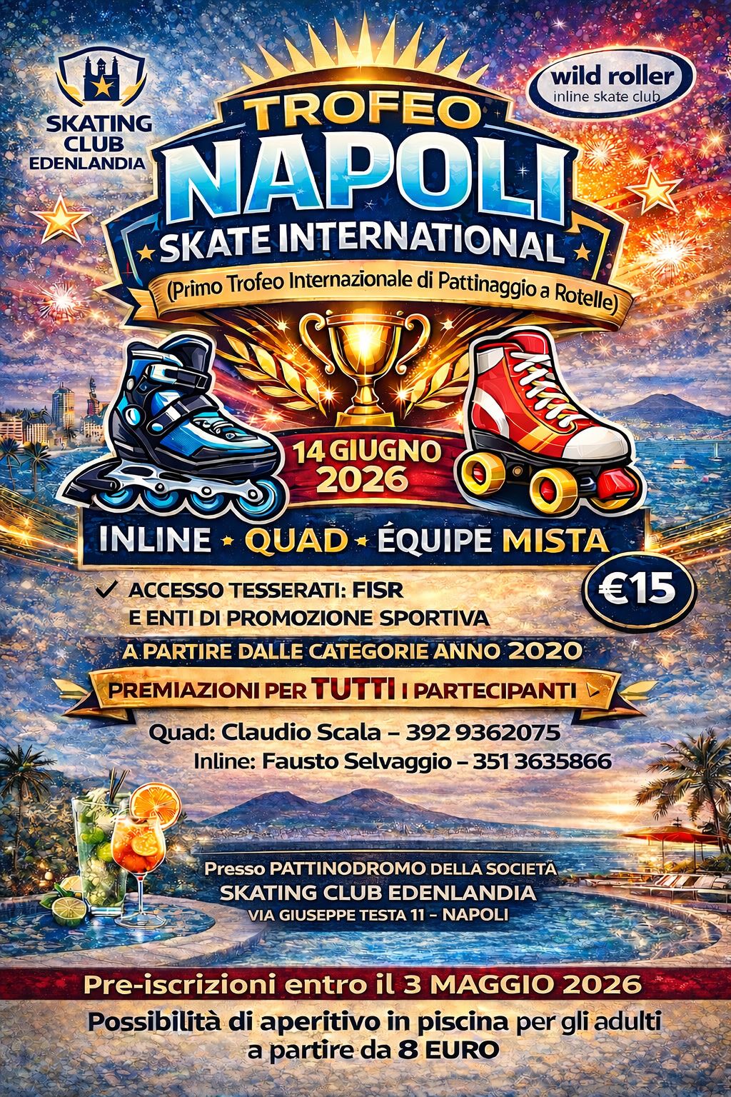Napoli si prepara ad accogliere un evento che promette energia, passione e spettacolo su ruote: il “Trofeo Napoli Skate International”, presentato come Primo Trofeo Internazionale di Pattinaggio a Rotelle, è in programma per il 14 giugno 2026 presso il Pattinodromo della società Skating Club Edenlandia, in Via Giuseppe Testa 11, Napoli.